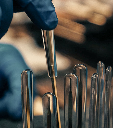 Temple tips are gently heated and pressed into place, creating the final point of contact for lasting comfort. A small step that reflects the care and craftsmanship behind every Randolph frame.