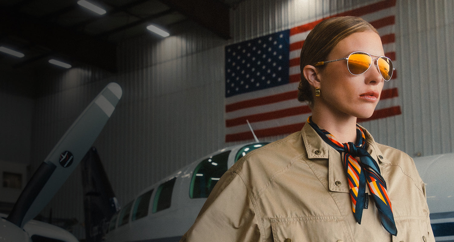 Inspired by the spirit of aviation and the iconic female aviator Amelia Earhart, the Amelia Runway Collection pays tribute to Amelia's remarkable contributions to the world of flight and as a fashion designer. This all-new limited-edition collection includes a White Gold Aviator and Amelia, all-new new 'Canary Gold' acetate bayonet temples and all-new 'Sunset Rose' lenses.